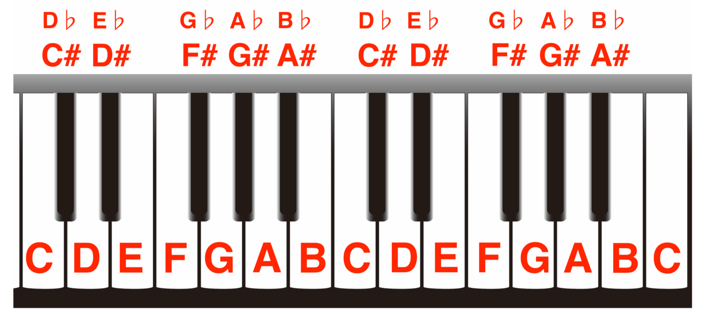 このような法則で全てのメジャーコード、マイナーコードのコードネームと位置関係を確認してみてください。