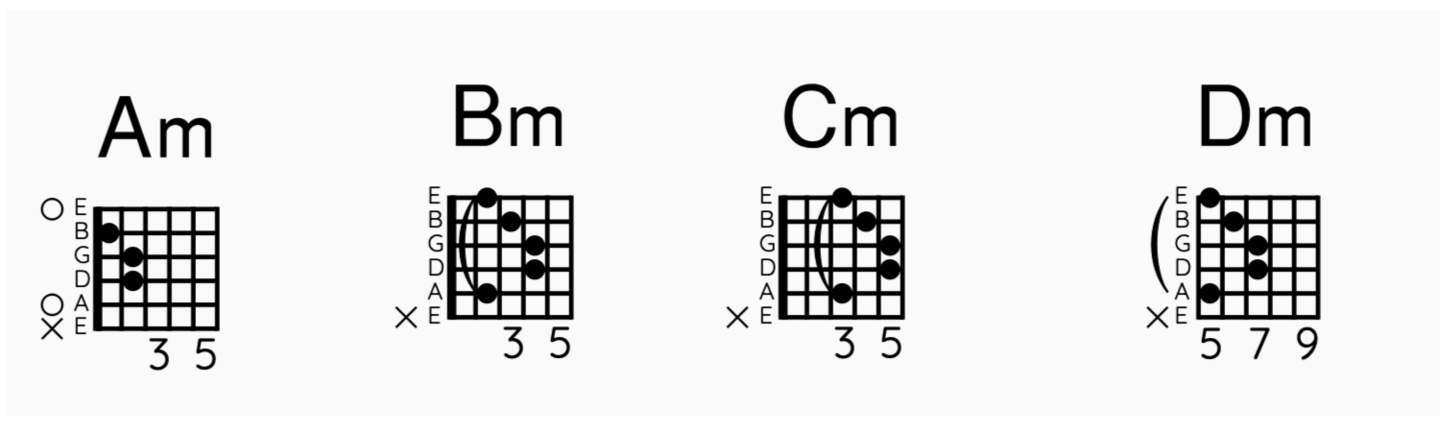 なのでこれも人差し指のフレットの音がコードネームになります。