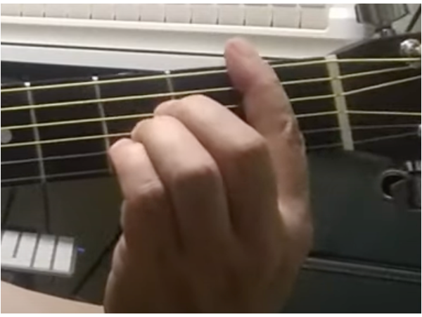 ローコードのEmを人差し指セーハで押さえた時の形ですが、人差し指以外はEmと同じなんですよ。