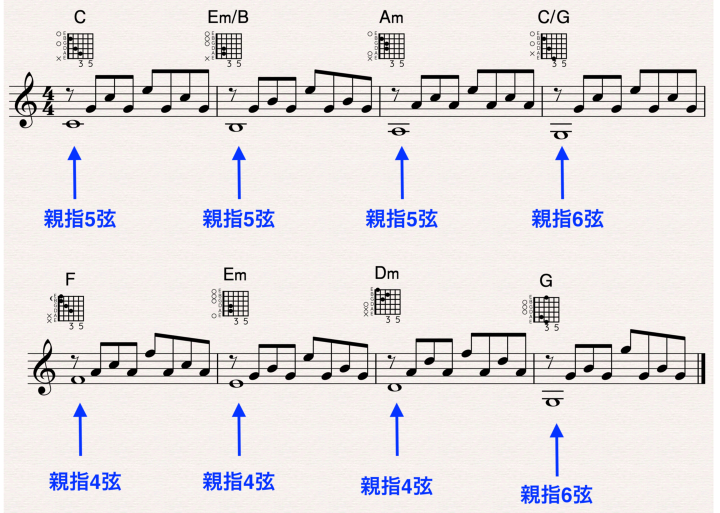 それでは左手でコードを押さえたら、右手で弾いてみましょう〜✌