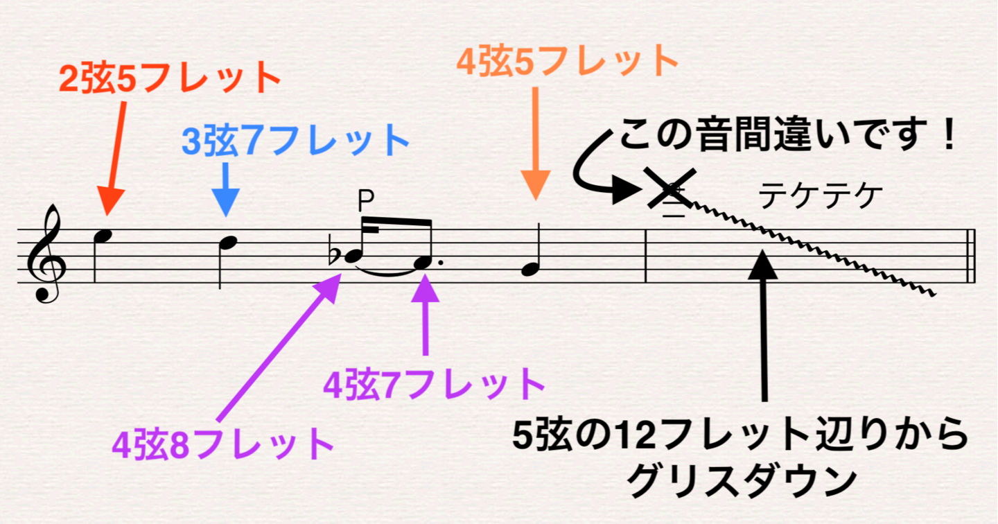 5弦の12フレットあたりから1フレットにかけて降りてきます。