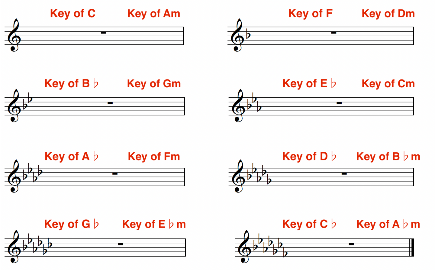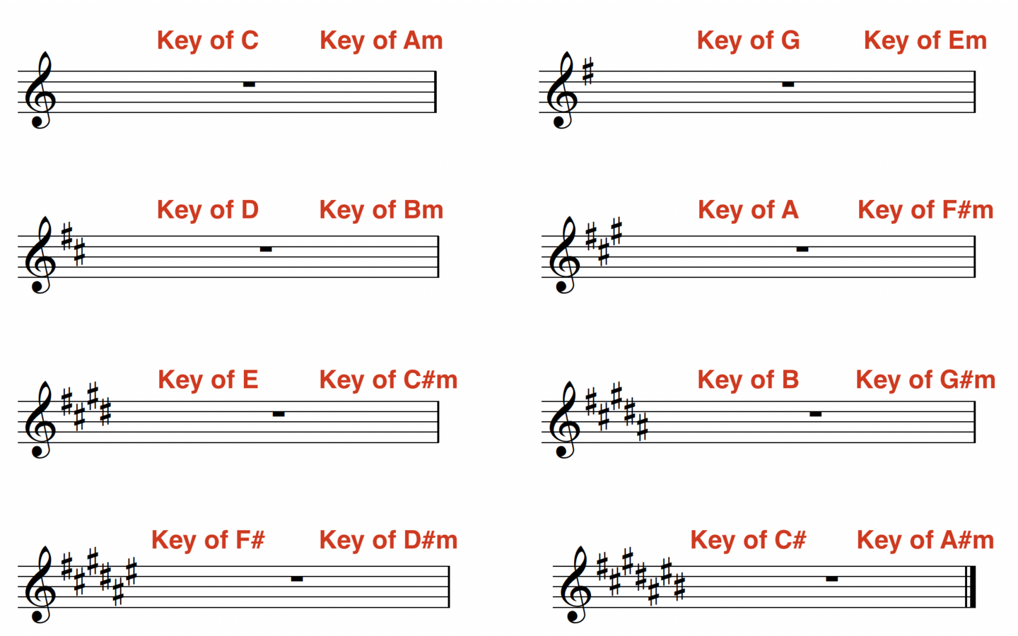 今はただ、この調号が付いてたらキーはこれだ!くらいで結構ですので、軽い気持ちで覚えられたら覚えちゃってください。