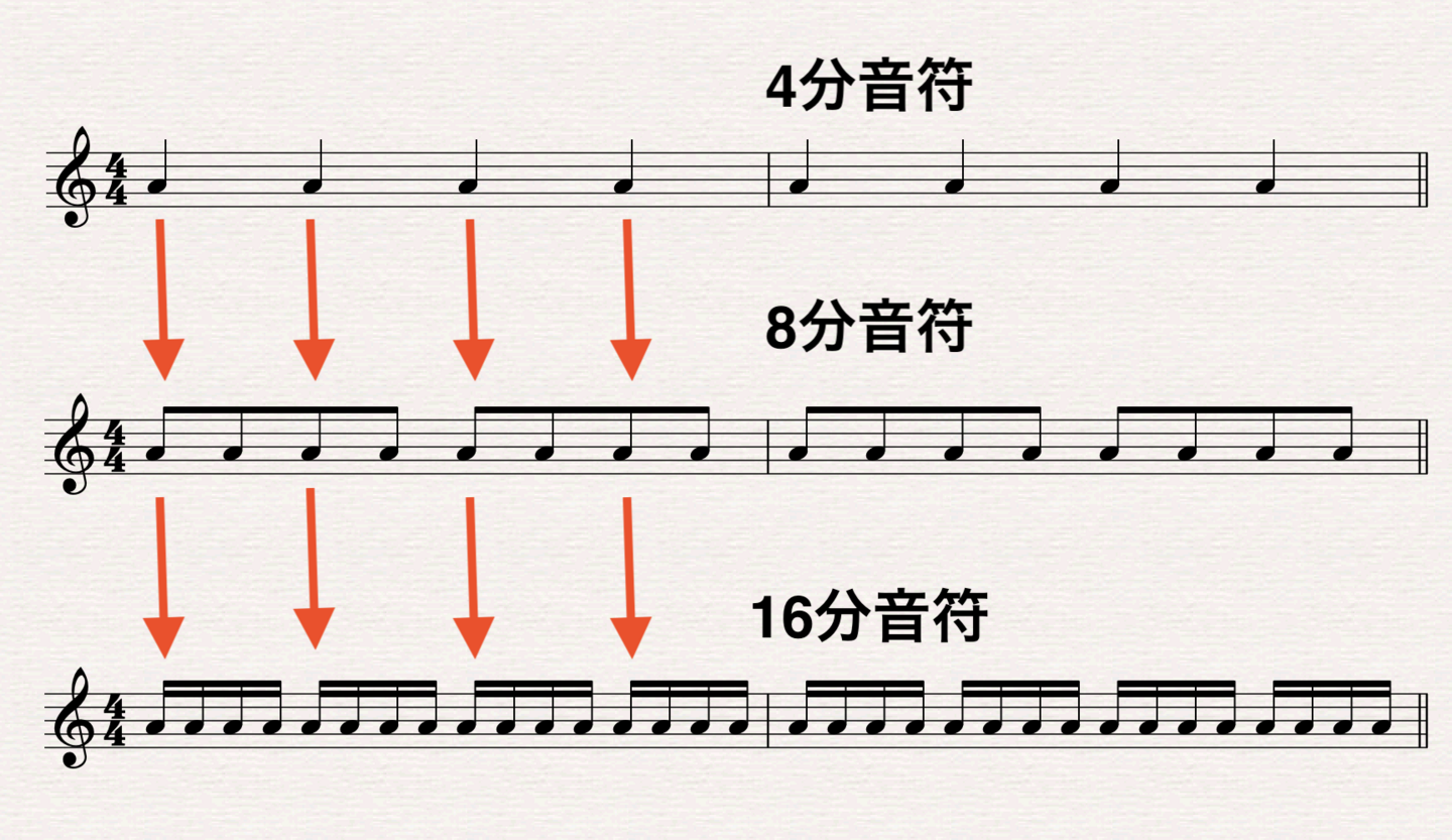 リズムは様々な「音の長さ」の組み合わせで成り立ってます。